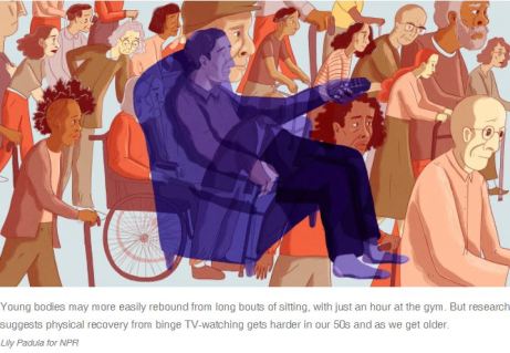 National Public Radio reported yesterday on a study that found that inactivity today does more than raise the risk of disease, it also reduces the ability to get around at all as we grow older. And, rebounding from prolonged inactivity becomes slower – much, much slower – as we grow older. The story is here.